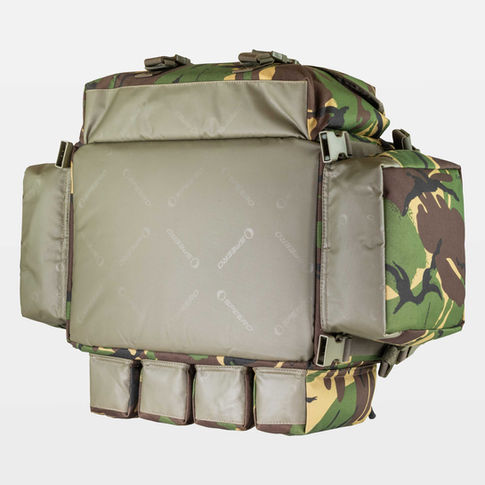 Designed around todays carp angler with various sized external pockets to take oils, glugs, stick mixes, sprays etc. and four front hook bait pockets taking up to 12 pots. The main compartment will take up to 12kg of bait or will accept the small and medium bait/cool bags enabling the angler to take different sizes and types of bait.