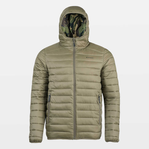 Built with a rugged 3 layer construction and a Breatha-Tex waterproof, windproof, and breathable membrane that delivers a minimum of 10,000mm waterproofness and 5,000g/m² breathability. The 4 way stretch outer fabric ensures ease of movement, while 200g/m² polyester down insulation provides lightweight dependable warmth. Functional details include a stormproof front zip, two fleece-lined hand warmer pockets and elasticated wrist, waist, and hood bindings for a secure fit. Designed with versatility in mind, the jacket is reversible, offering DPM/Green or Green/Green. Featuring subtle branding on the logo and zip pullers. Its classic fit allows room for layering, making it a practical and stylish choice whatever the weather throws at you.